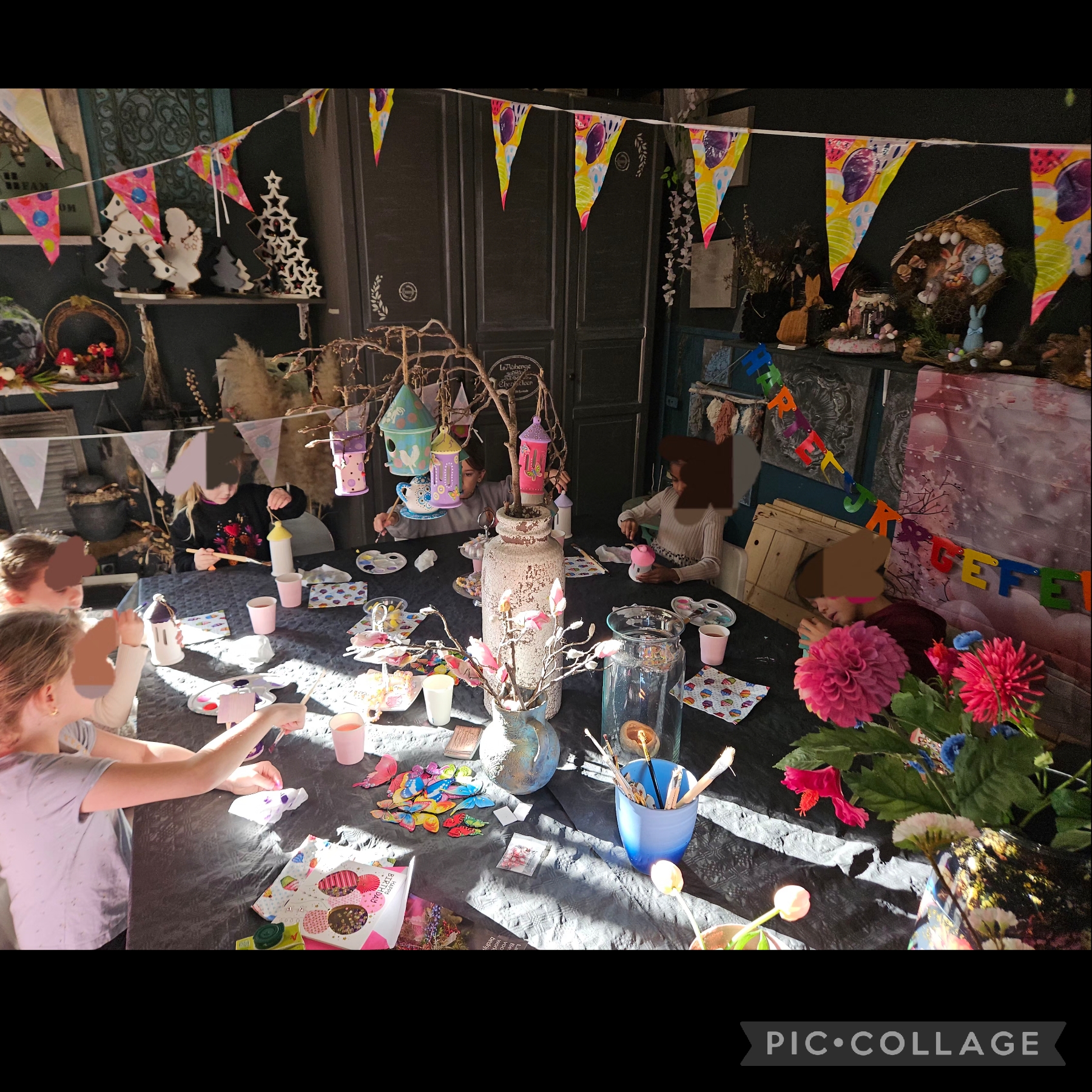 De workshopruimte wordt natuurlijk gezellig versierd met slingers en ballonnen en er wordt op verzoek een taart/gebak geregeld.